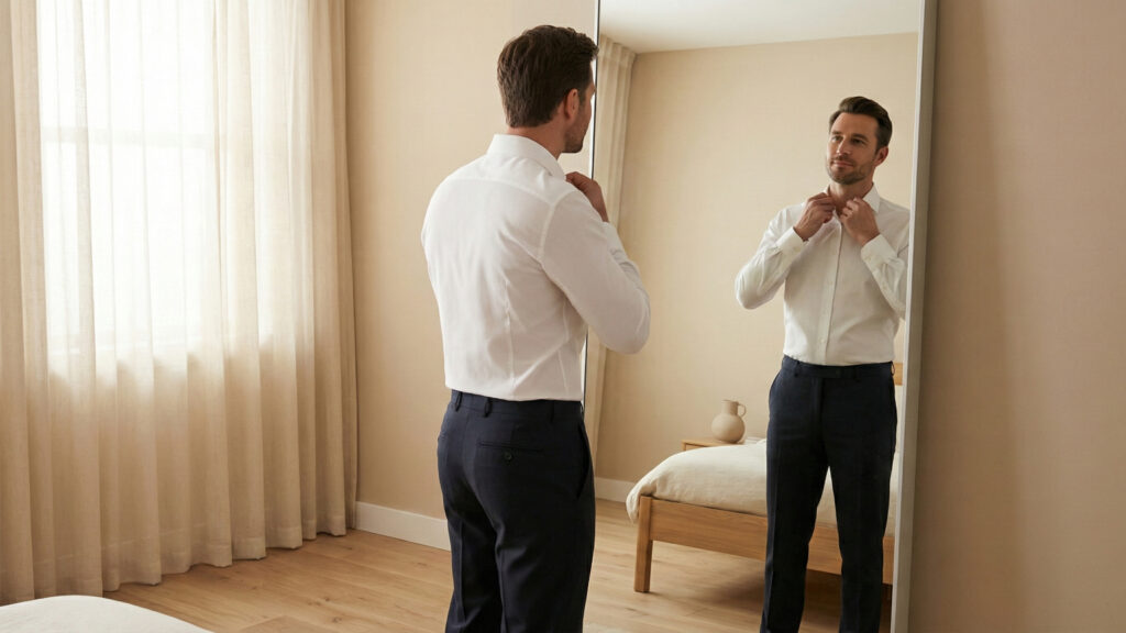 If there is one non-negotiable rule in men’s style, it’s this: fit beats everything else every single time. A well-cut shirt that sits perfectly on your frame will always command more attention and respect than an expensive piece that hangs loose or pulls at the chest. This is the single most important secret to how to look expensive for men — and it begins the moment you choose the right garment.