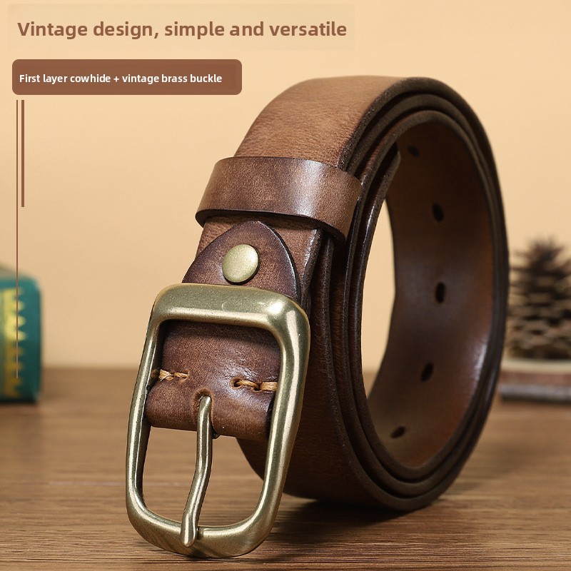 Copper Buckle Design – Features antique copper pin buckle with geometric details